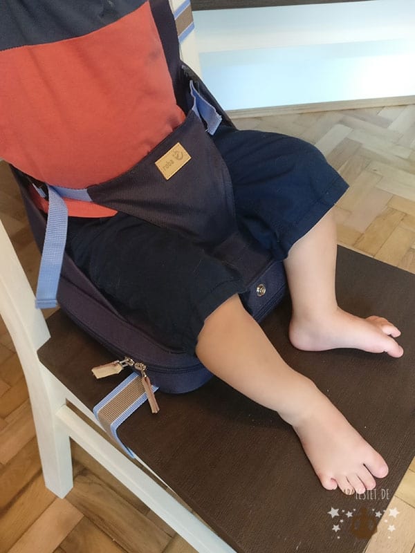 Für meinen Geschmack lassen sich allerdings die Gurte etwas leicht verstellen. Ist die Sitzerhöhung erst einmal angebracht, bleibt er zwar da wo er sein soll, doch für das Sicherheitsgefühl könnten sie ruhig etwas strammer zu verstellen sein.