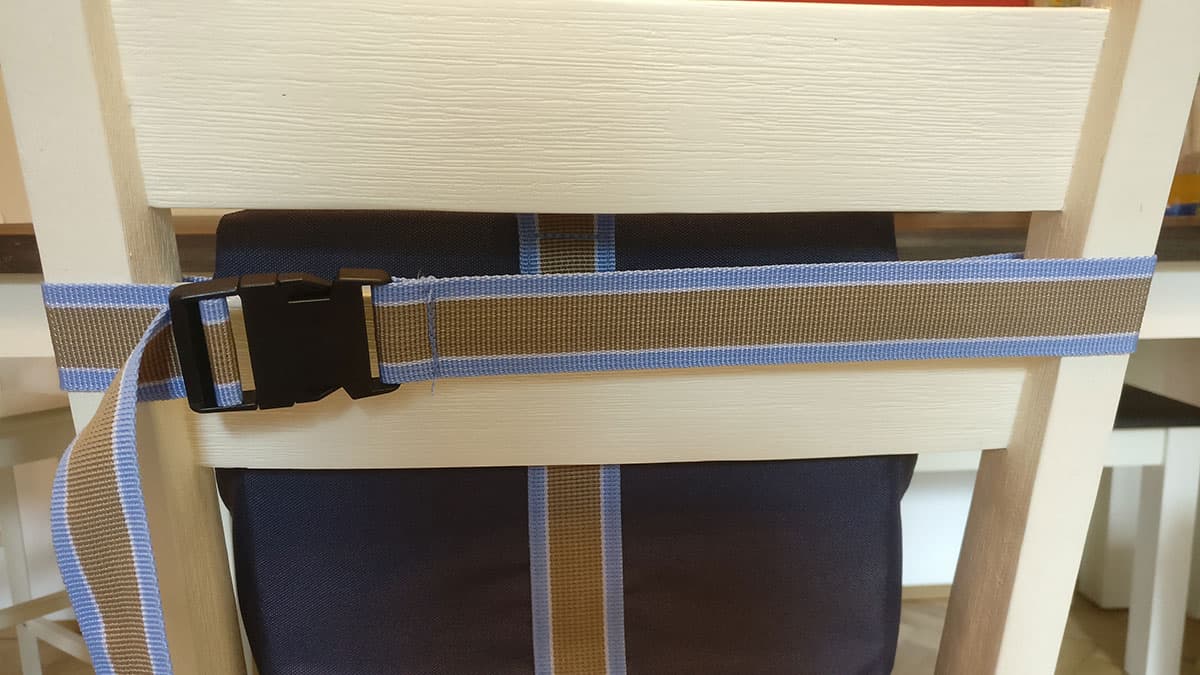 Wir haben den Sitz sowohl bei den Großeltern an einem normalen Holzstuhl, im Campingurlaub am Campingstuhl als auch bei einem stink normalen Stappelsessel für den Garten befestigt. Und bei allen drei Stuhlarten gab es bezüglich der Sicherheit keine Probleme.